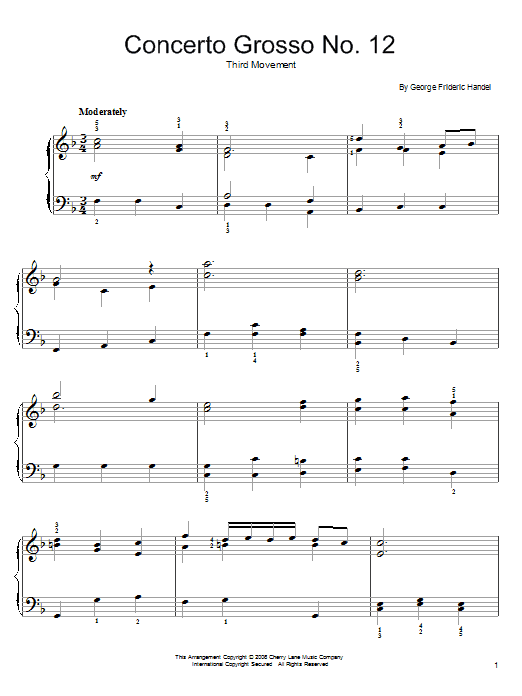 Download or print George Frideric Handel Larghetto sheet music, chords and digital score arranged for Easy Piano. This Classical score includes 2 page(s).
