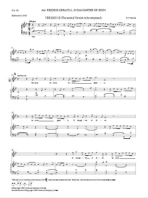 Download or print George Frideric Handel Rejoice Greatly, O Daughter Of Zion (Version II) sheet music, chords and digital score arranged for SATB Choir. This Classical score includes 7 page(s).