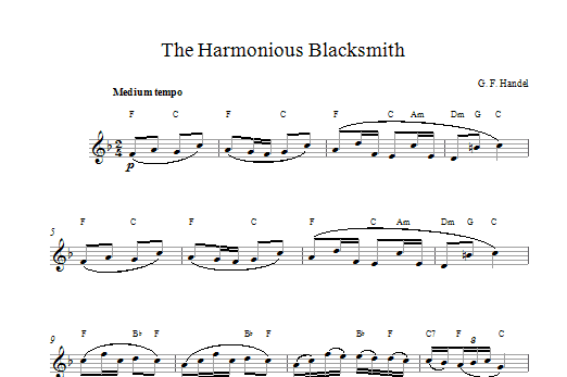 Download or print George Frideric Handel The Harmonious Blacksmith sheet music, chords and digital score arranged for Piano Solo. This Classical score includes 5 page(s).