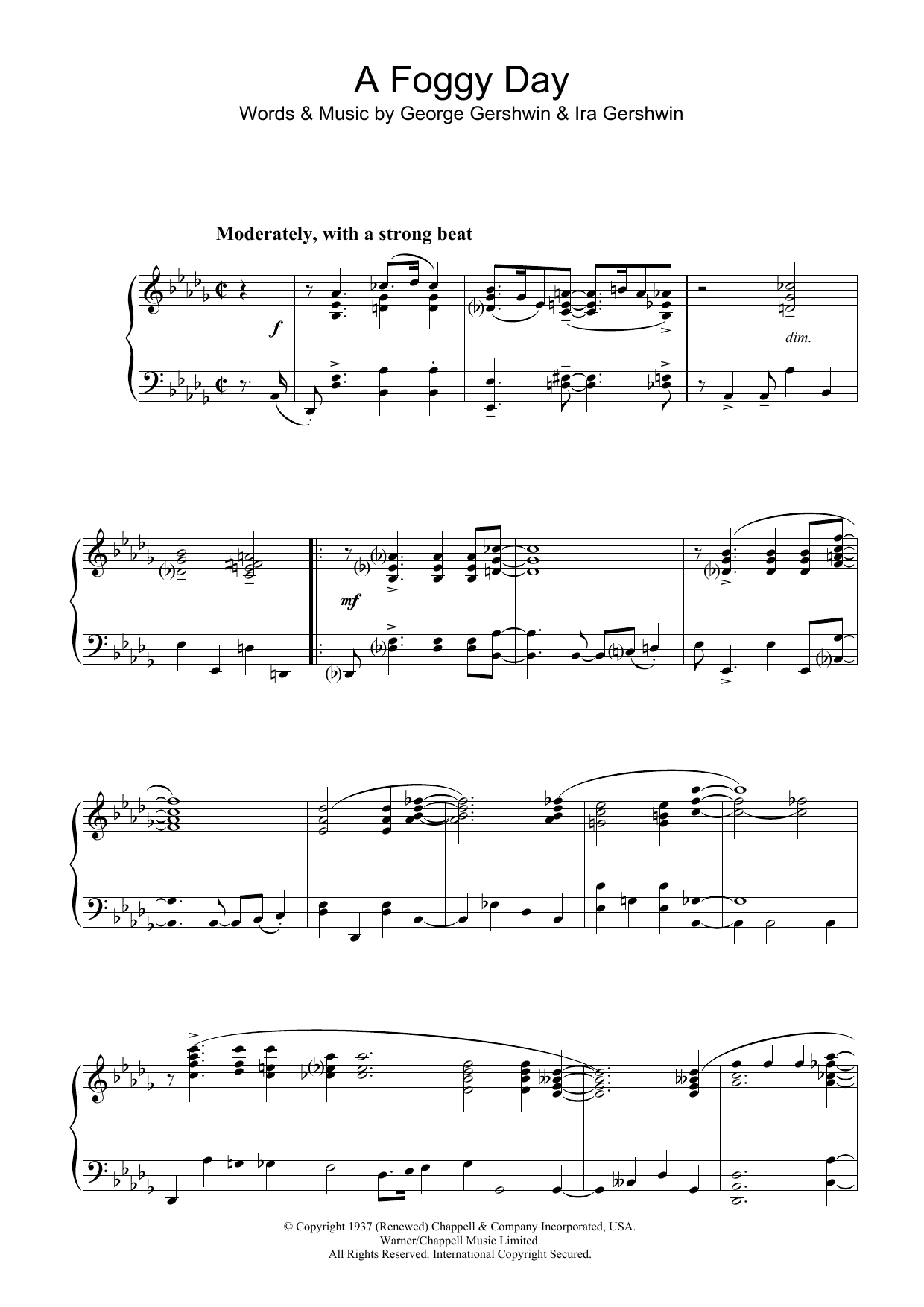 Download or print George Gershwin A Foggy Day sheet music, chords and digital score arranged for Piano Solo. This Jazz score includes 2 page(s).