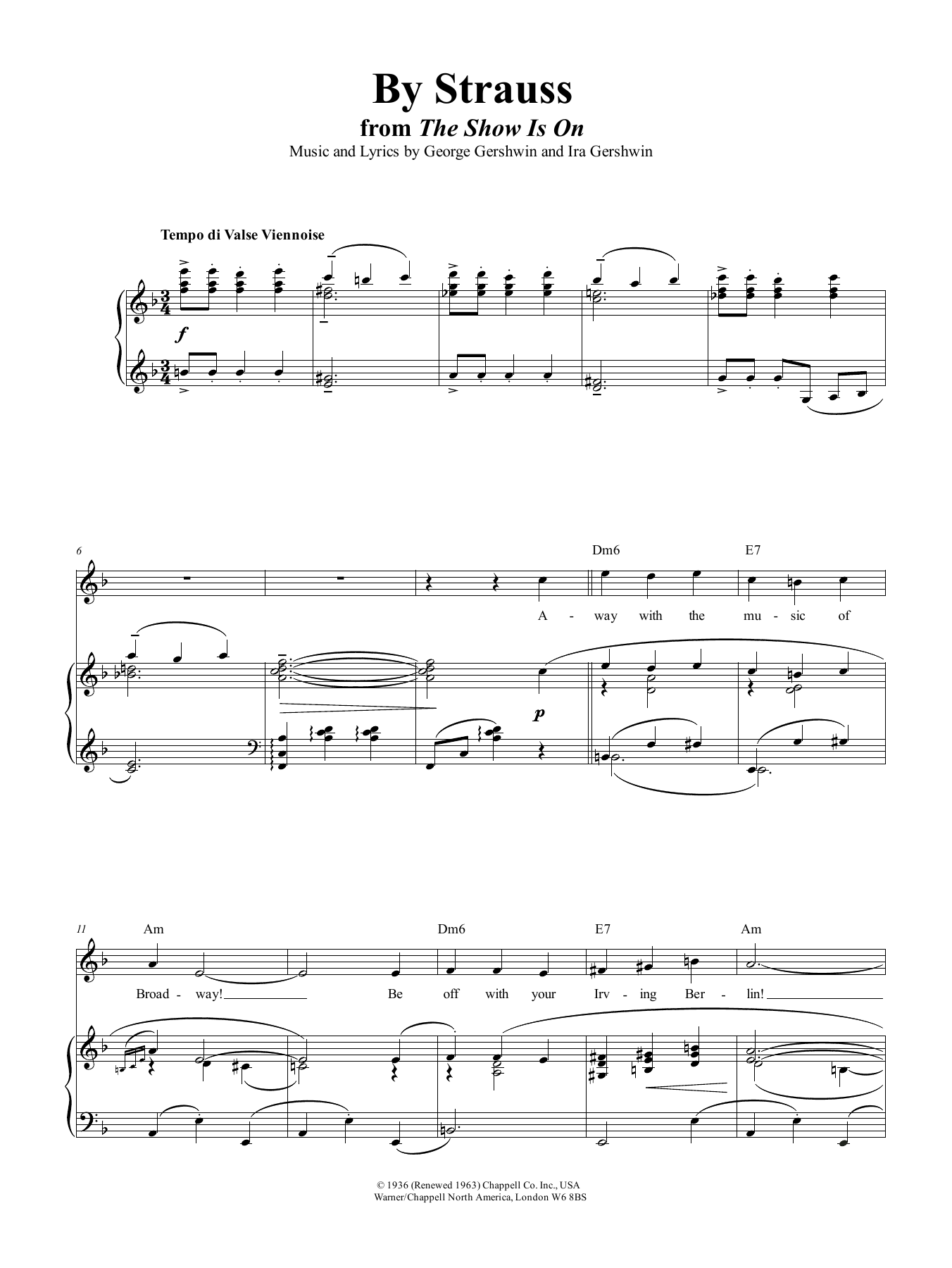 Download or print George Gershwin By Strauss sheet music, chords and digital score arranged for Piano & Vocal. This Jazz score includes 7 page(s).