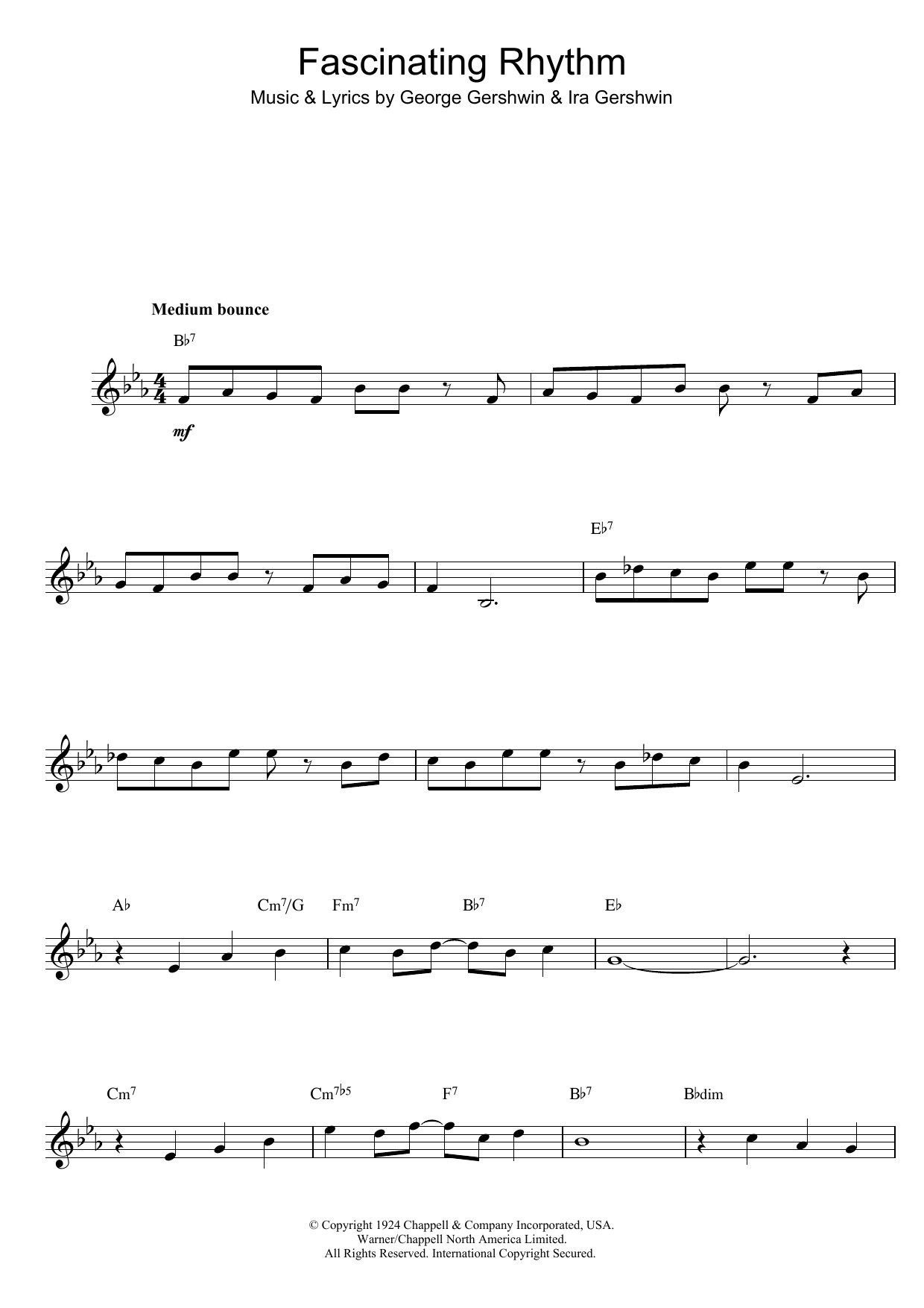 Download or print George Gershwin Fascinating Rhythm sheet music, chords and digital score arranged for Easy Piano. This Jazz score includes 2 page(s).