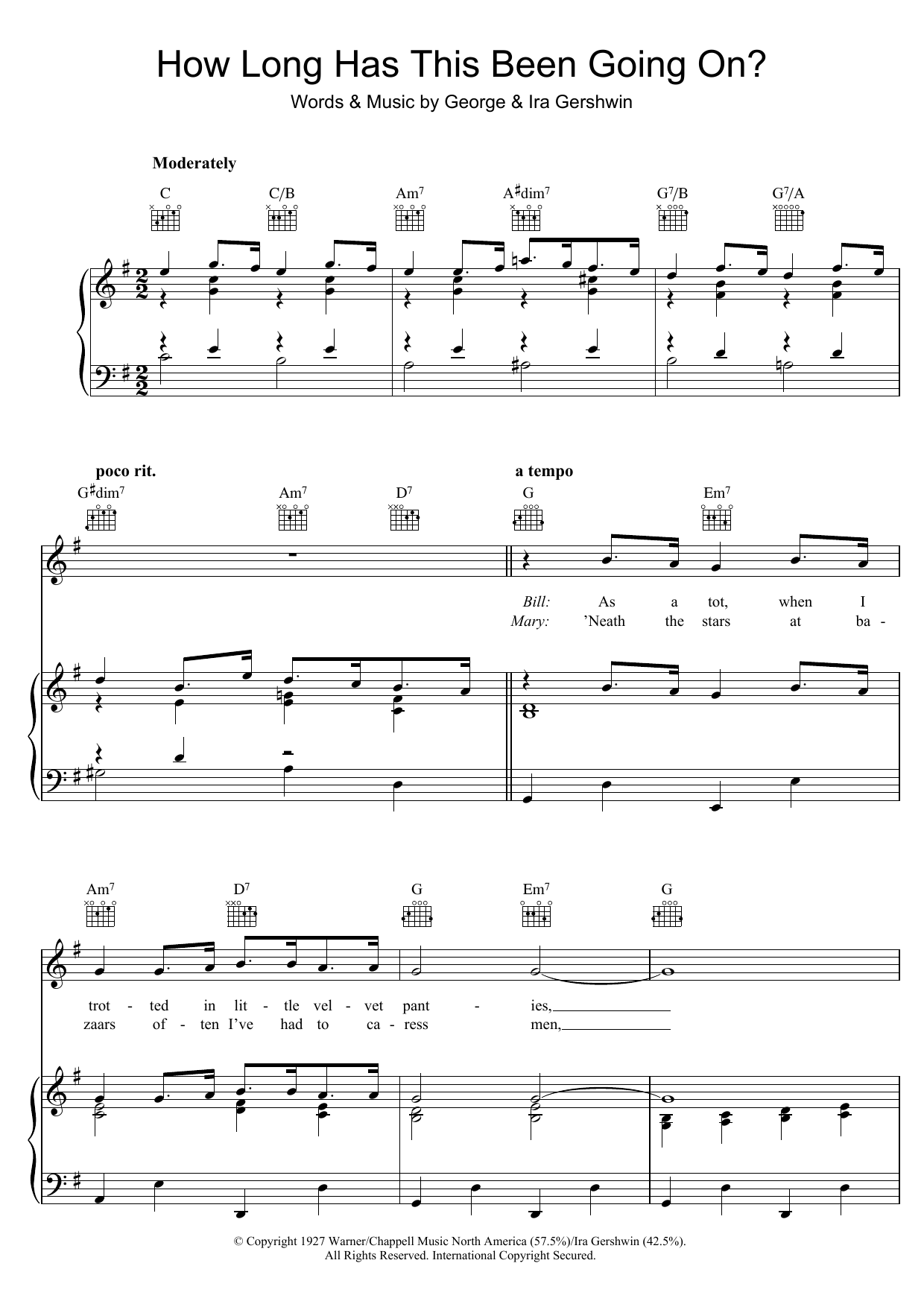 Download or print George Gershwin How Long Has This Been Going On? sheet music, chords and digital score arranged for Piano & Vocal. This Jazz score includes 5 page(s).