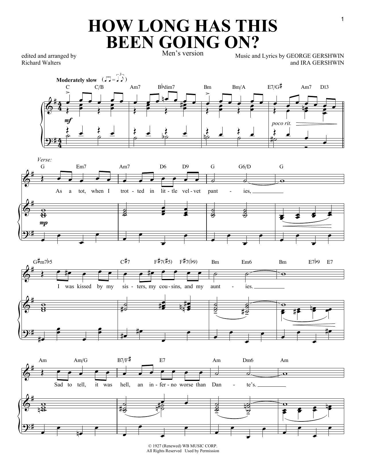 Download or print George Gershwin How Long Has This Been Going On? [Men's version] sheet music, chords and digital score arranged for Piano & Vocal. This Jazz score includes 5 page(s).