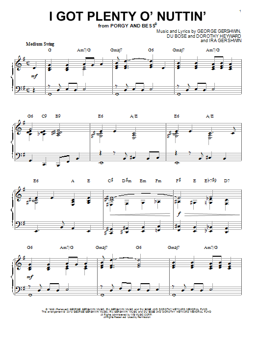 Download or print George Gershwin I Got Plenty O' Nuttin' [Jazz version] (arr. Brent Edstrom) sheet music, chords and digital score arranged for Piano & Vocal. This Jazz score includes 4 page(s).