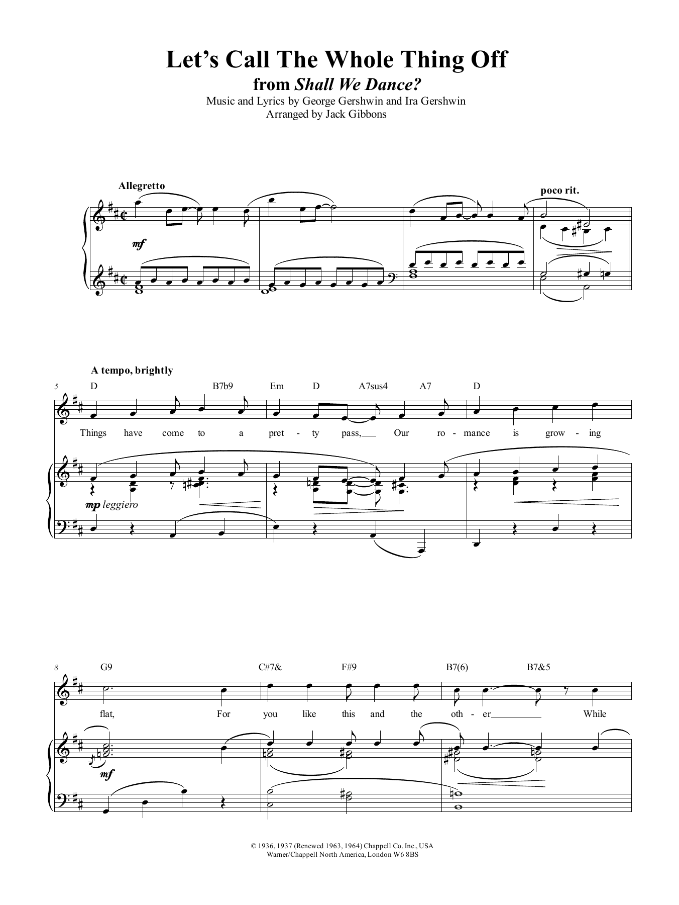 Download or print George Gershwin Let's Call The Whole Thing Off sheet music, chords and digital score arranged for Easy Piano. This Standards score includes 5 page(s).