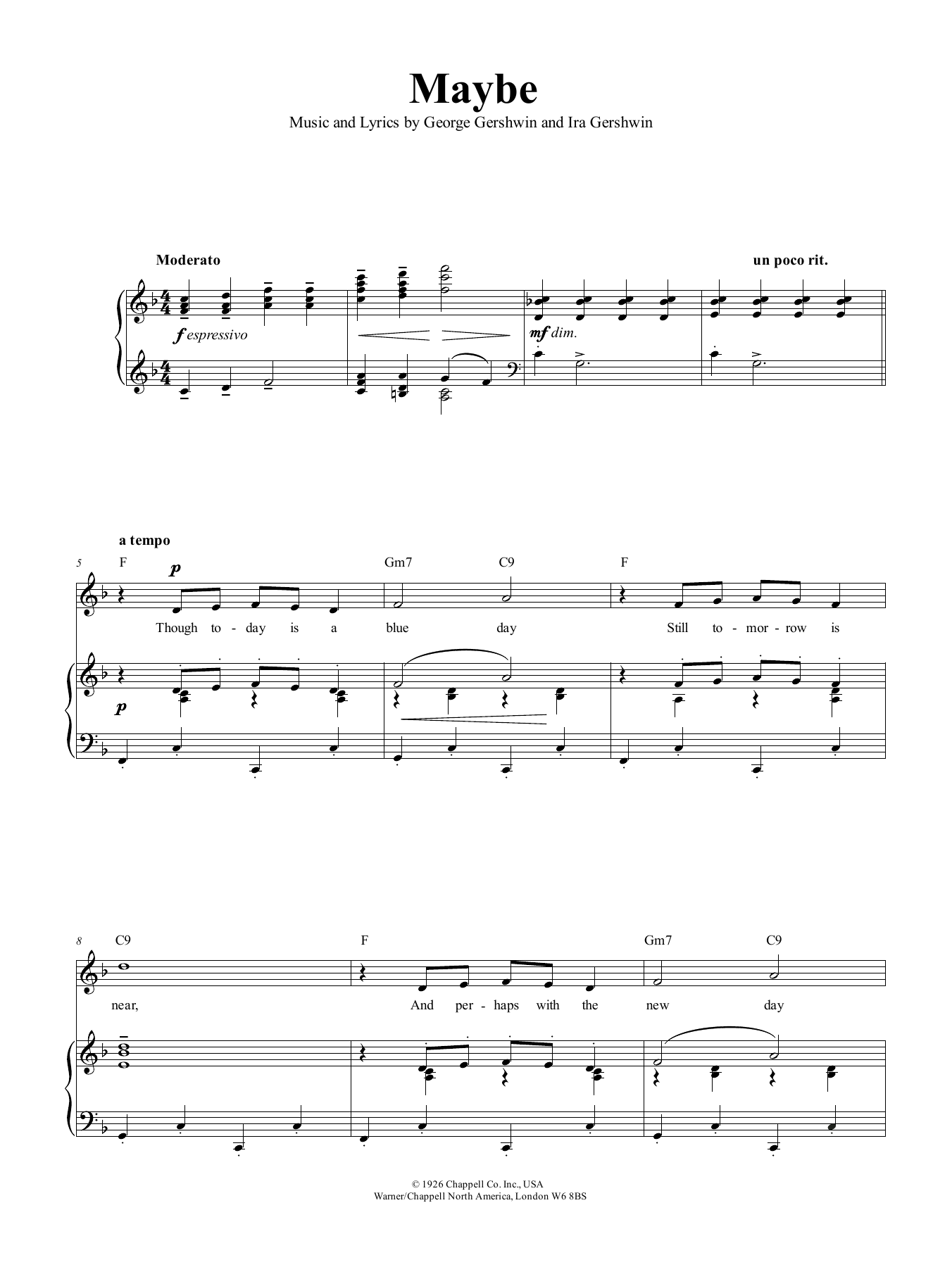 Download or print George Gershwin Maybe sheet music, chords and digital score arranged for Lead Sheet / Fake Book. This Jazz score includes 1 page(s).