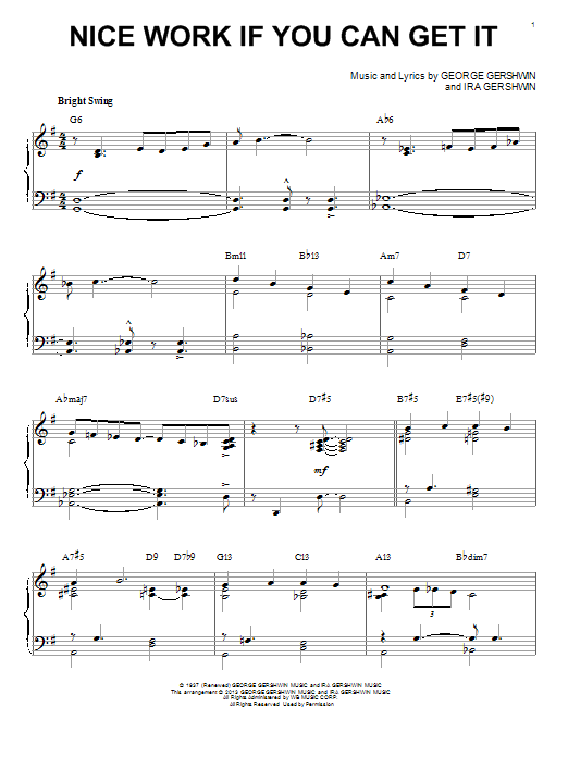 Download or print George Gershwin Nice Work If You Can Get It [Jazz version] (arr. Brent Edstrom) sheet music, chords and digital score arranged for Piano & Vocal. This Jazz score includes 5 page(s).
