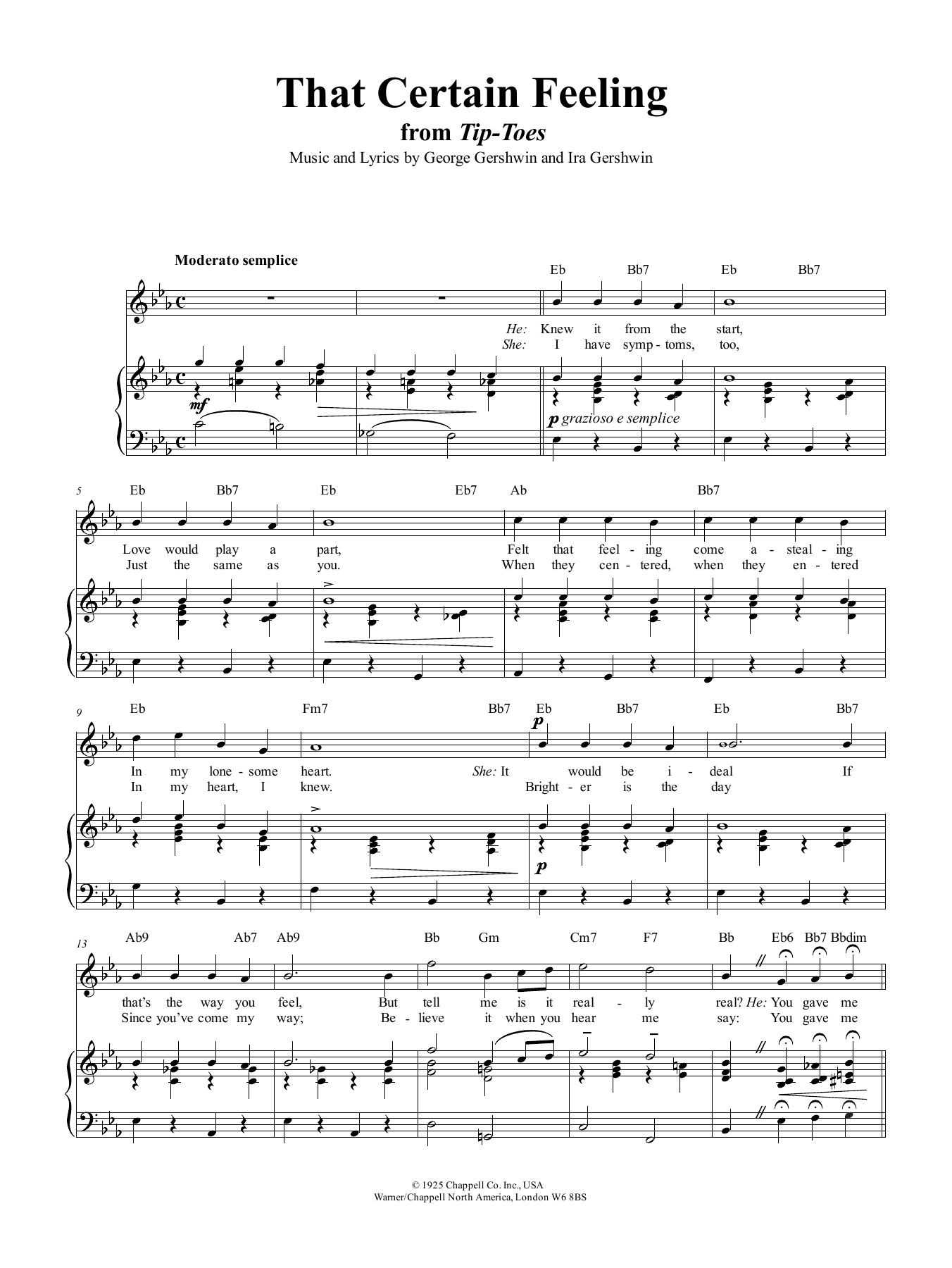 Download or print George Gershwin That Certain Feeling sheet music, chords and digital score arranged for Real Book – Melody & Chords. This Jazz score includes 1 page(s).