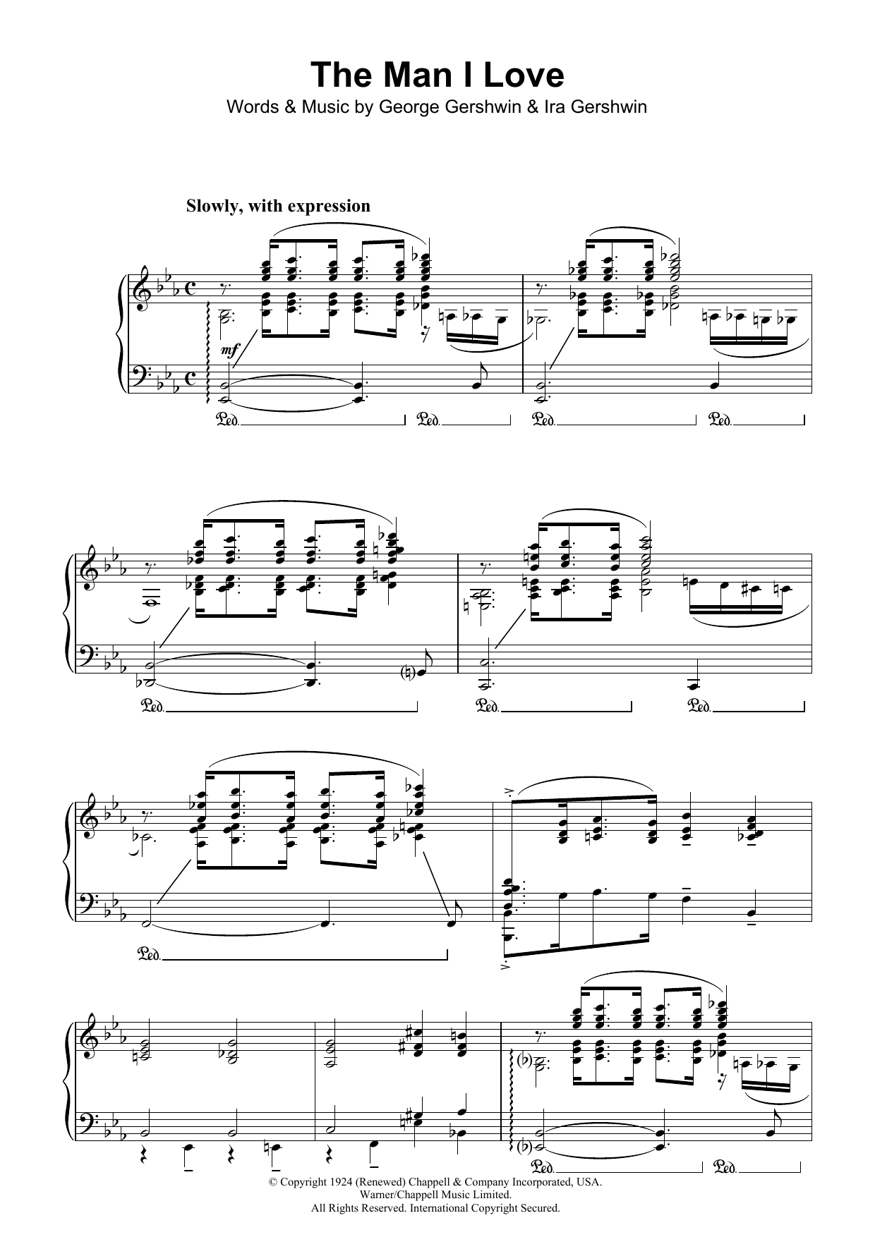 Download or print George Gershwin The Man I Love sheet music, chords and digital score arranged for Easy Piano. This Jazz score includes 3 page(s).