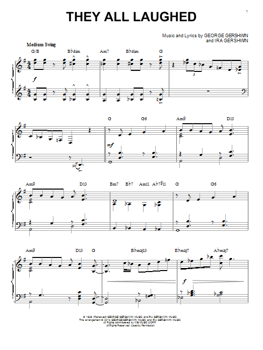 Download or print George Gershwin They All Laughed [Jazz version] (arr. Brent Edstrom) sheet music, chords and digital score arranged for Piano & Vocal. This Jazz score includes 5 page(s).