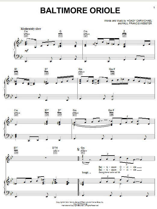 Download or print George Harrison Baltimore Oriole sheet music, chords and digital score arranged for Piano, Vocal & Guitar Chords (Right-Hand Melody). This Country score includes 5 page(s).