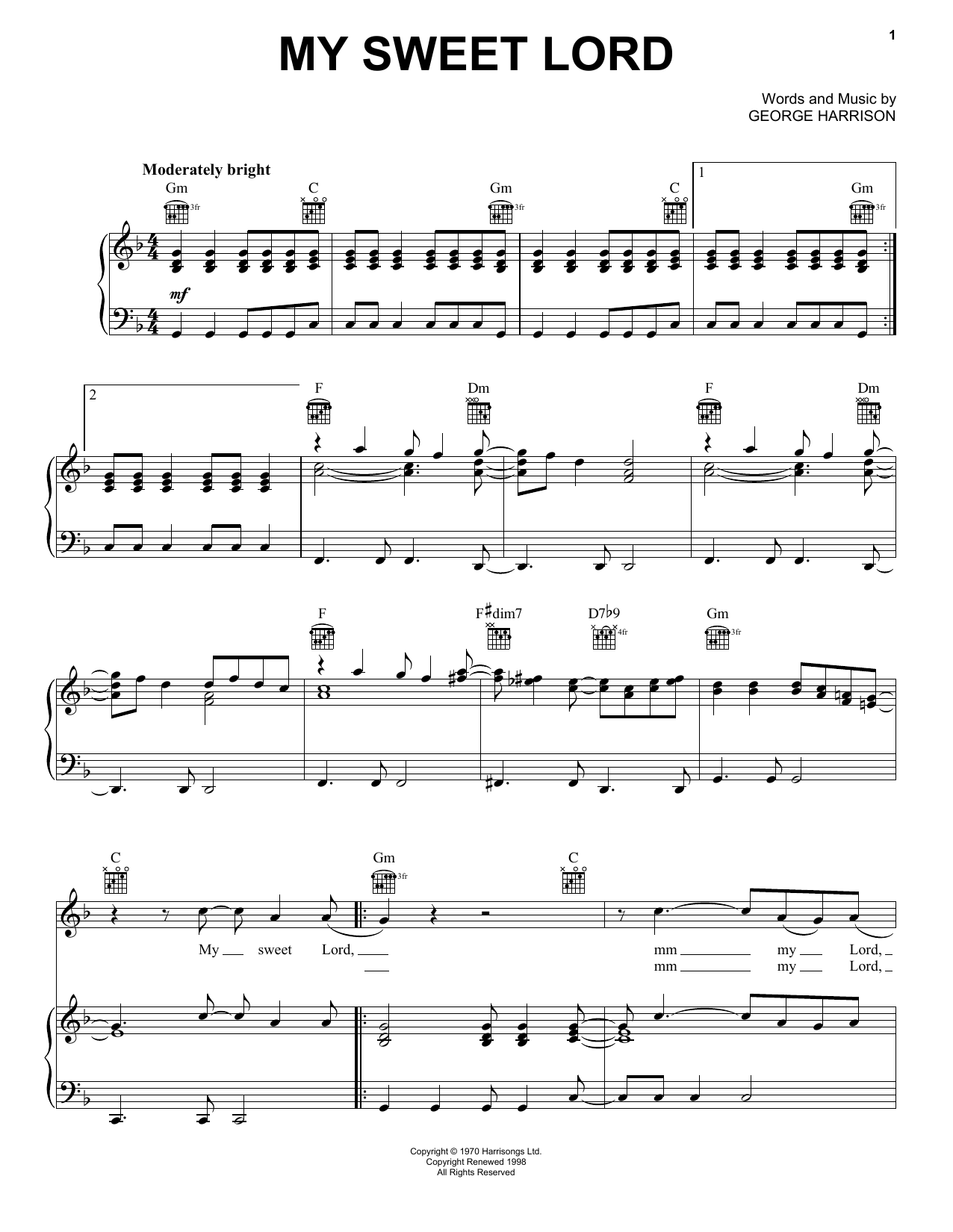 Download or print George Harrison My Sweet Lord sheet music, chords and digital score arranged for Guitar Tab. This Country score includes 9 page(s).
