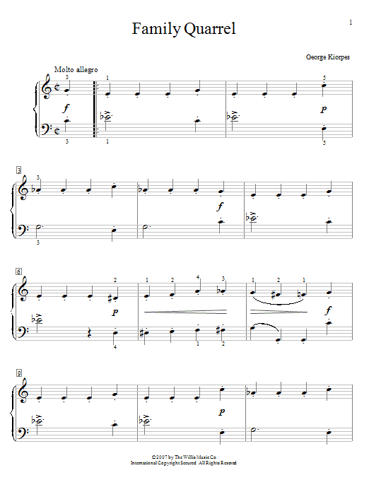 Download or print George Kiorpes Family Quarrel sheet music, chords and digital score arranged for Educational Piano. This Pop score includes 2 page(s).