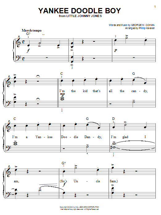 Download or print George M. Cohan Yankee Doodle Boy (arr. Phillip Keveren) sheet music, chords and digital score arranged for Easy Piano. This Children score includes 6 page(s).