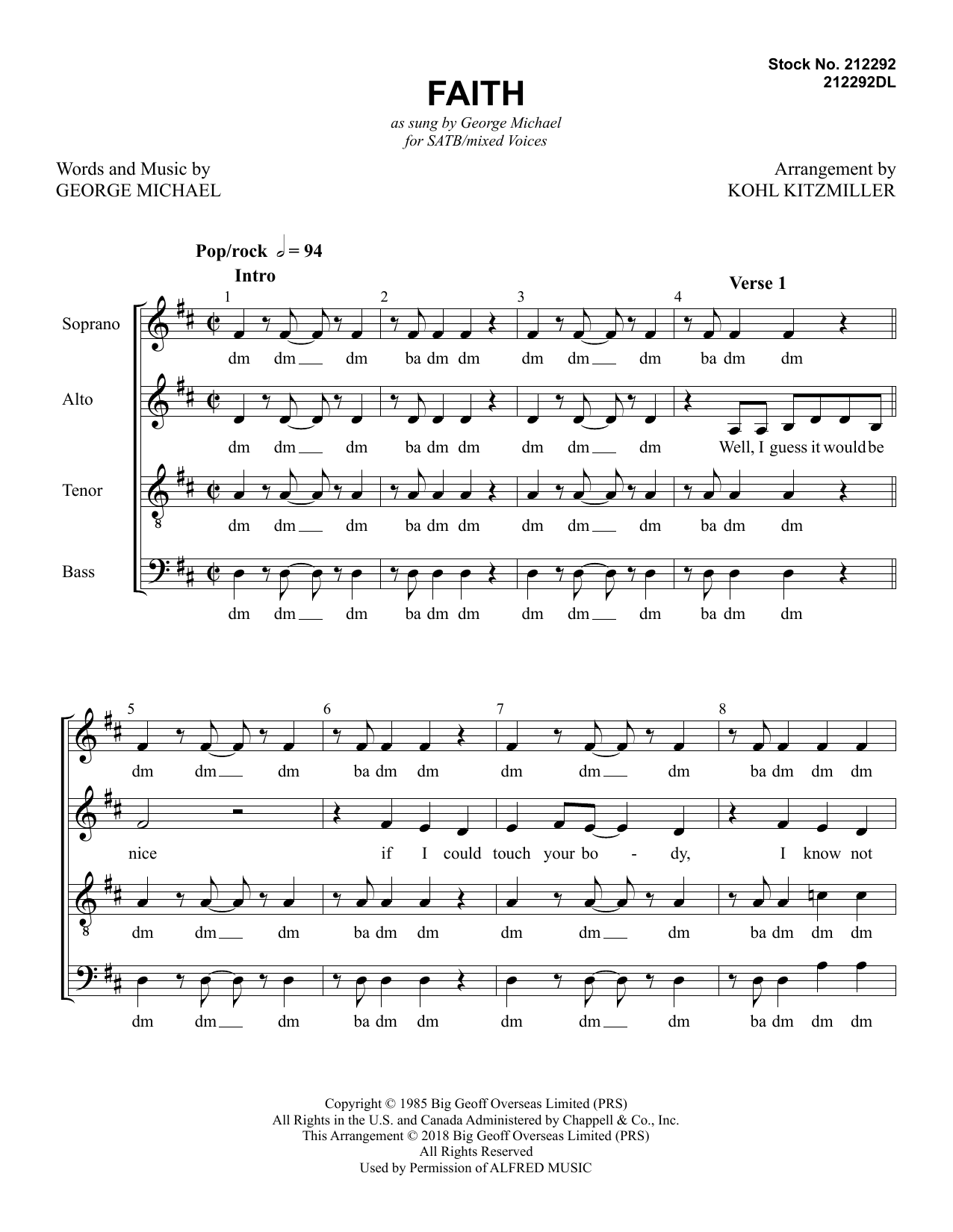 Download or print George Michael Faith (arr. Kohl Kitzmiller) sheet music, chords and digital score arranged for TTBB Choir. This Barbershop score includes 11 page(s).