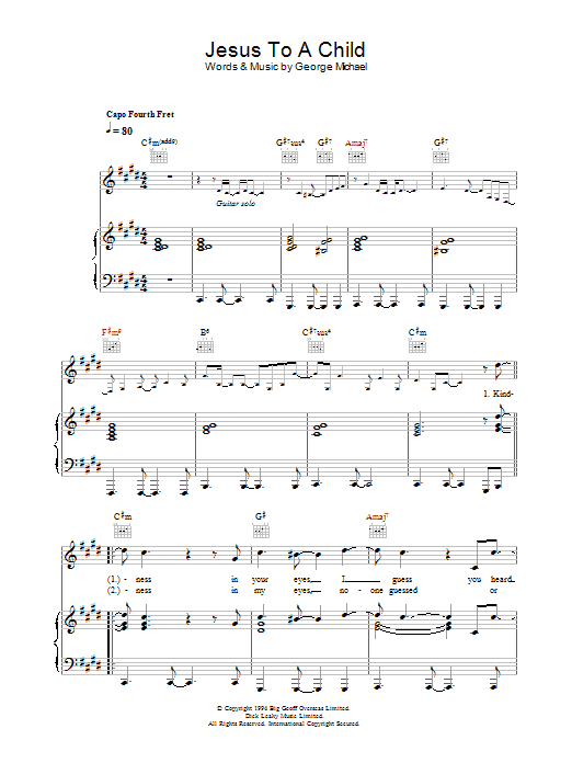 Download or print George Michael Jesus To A Child sheet music, chords and digital score arranged for Guitar Chords/Lyrics. This Pop score includes 3 page(s).