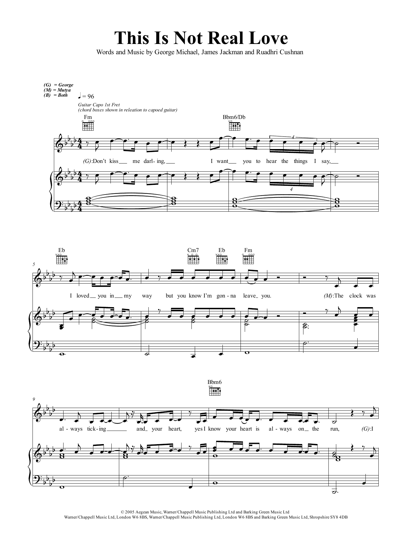 Download or print George Michael This Is Not Real Love sheet music, chords and digital score arranged for Piano, Vocal & Guitar Chords (Right-Hand Melody). This Pop score includes 7 page(s).