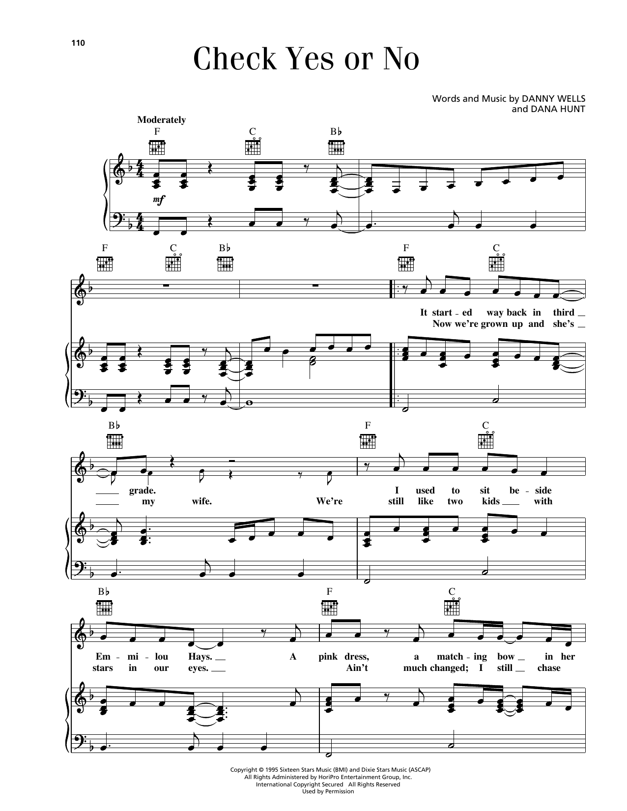 Download or print George Strait Check Yes Or No sheet music, chords and digital score arranged for Lead Sheet / Fake Book. This Country score includes 1 page(s).