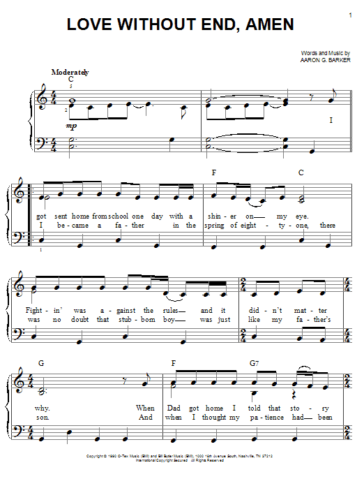 Download or print George Strait Love Without End, Amen sheet music, chords and digital score arranged for Lead Sheet / Fake Book. This Country score includes 2 page(s).