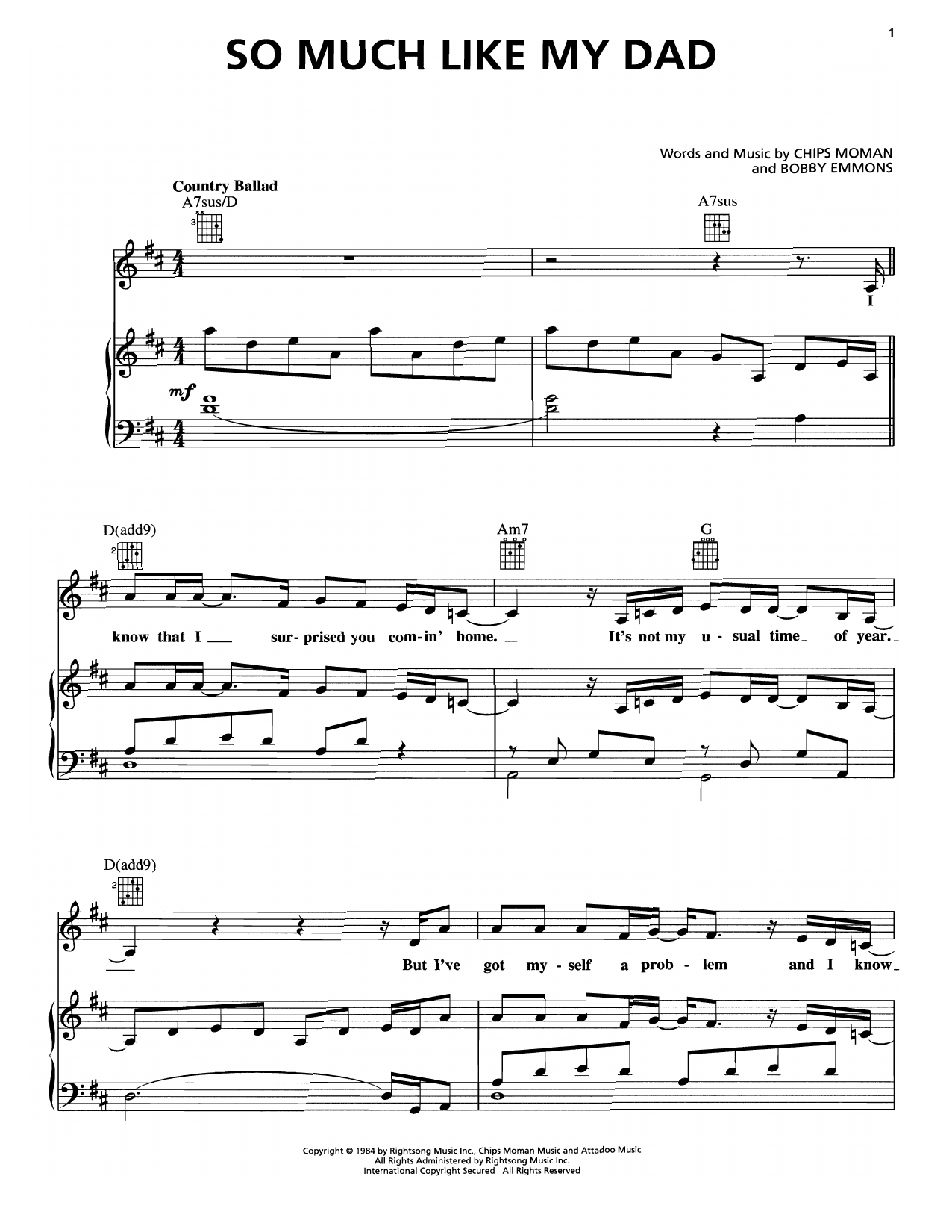 Download or print George Strait So Much Like My Dad sheet music, chords and digital score arranged for Piano, Vocal & Guitar Chords (Right-Hand Melody). This Country score includes 5 page(s).