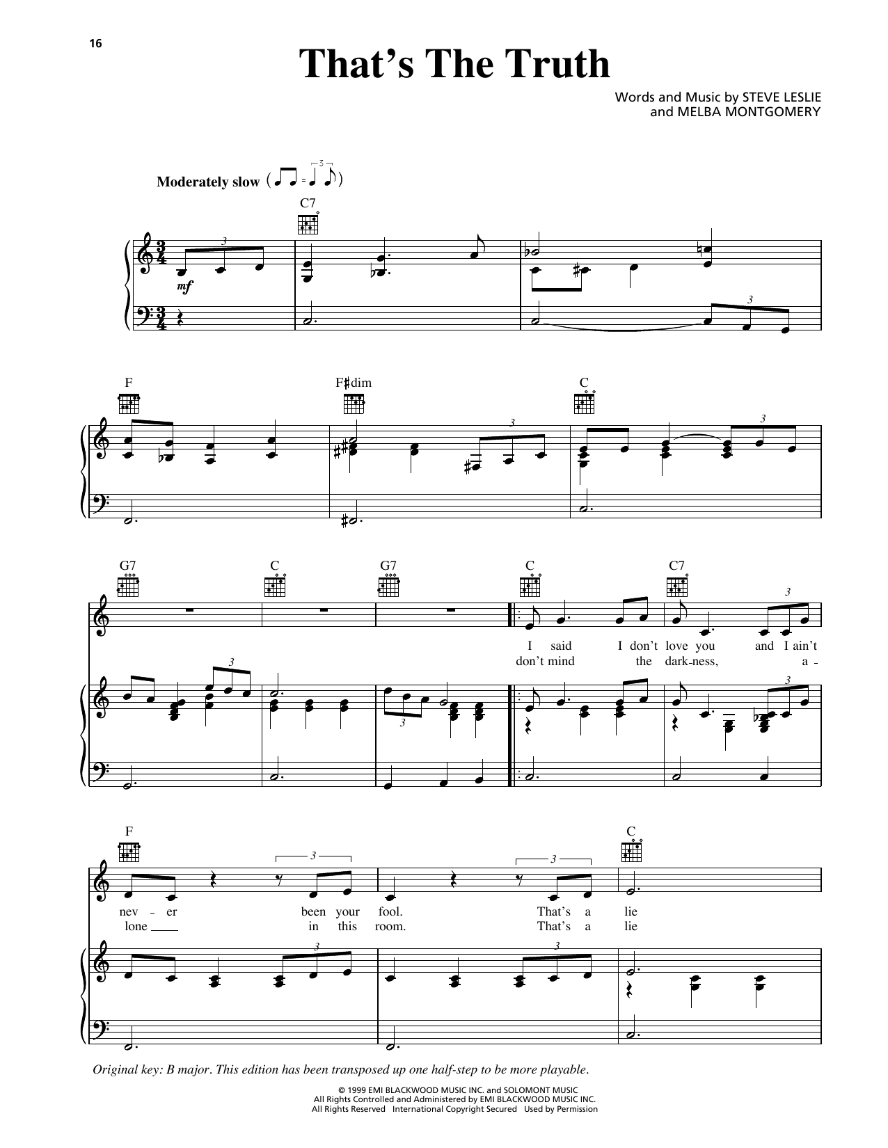 Download or print George Strait That's The Truth sheet music, chords and digital score arranged for Piano, Vocal & Guitar Chords (Right-Hand Melody). This Country score includes 4 page(s).