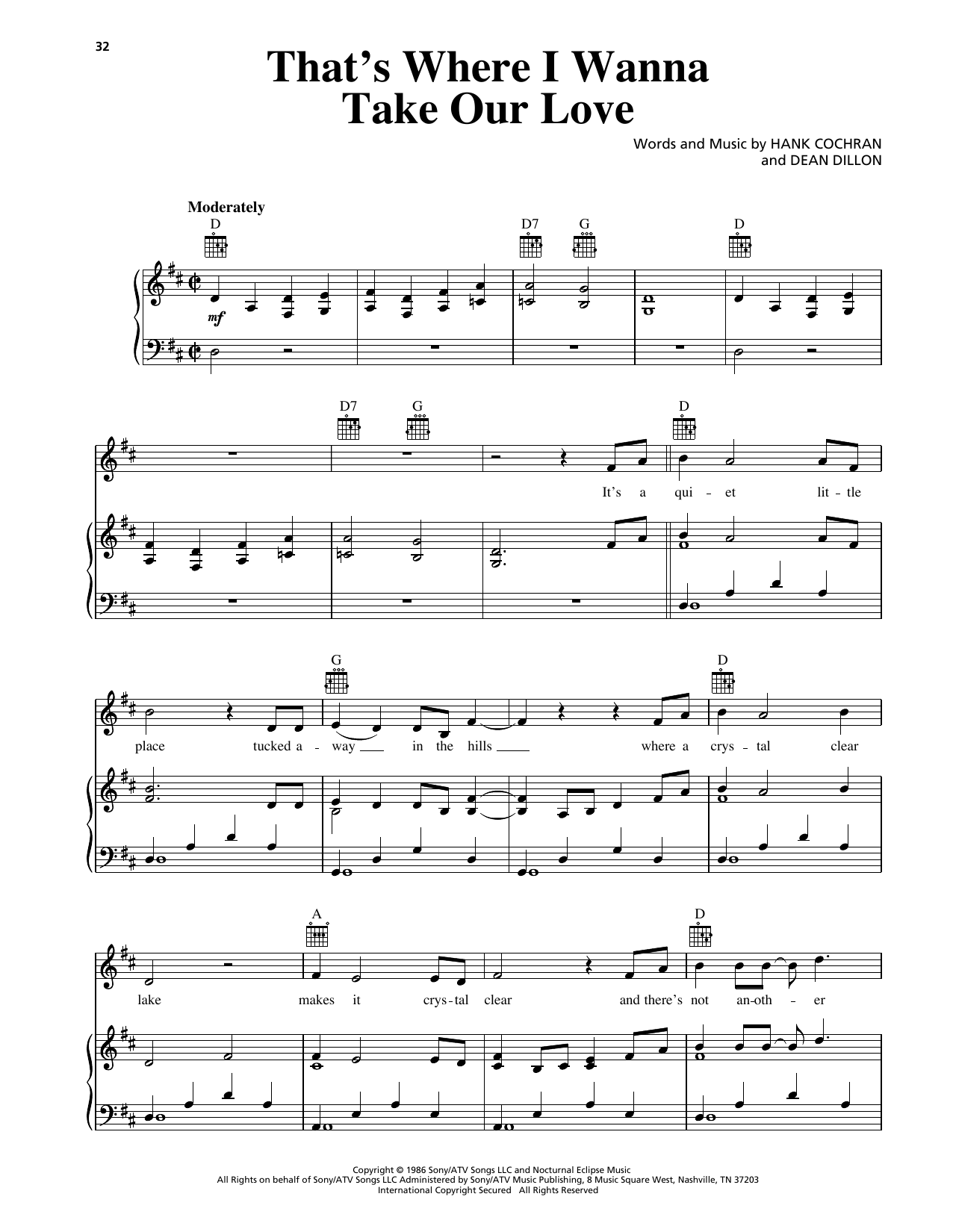 Download or print George Strait That's Where I Wanna Take Our Love sheet music, chords and digital score arranged for Piano, Vocal & Guitar Chords (Right-Hand Melody). This Country score includes 6 page(s).