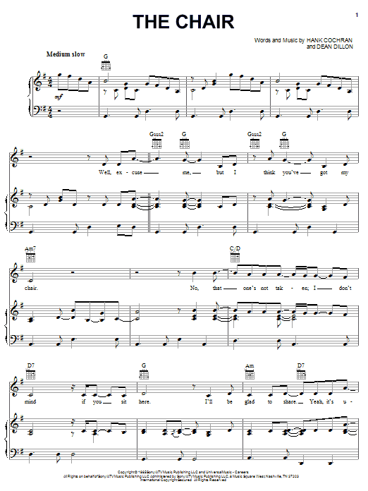 Download or print George Strait The Chair sheet music, chords and digital score arranged for Easy Lead Sheet / Fake Book. This Country score includes 2 page(s).