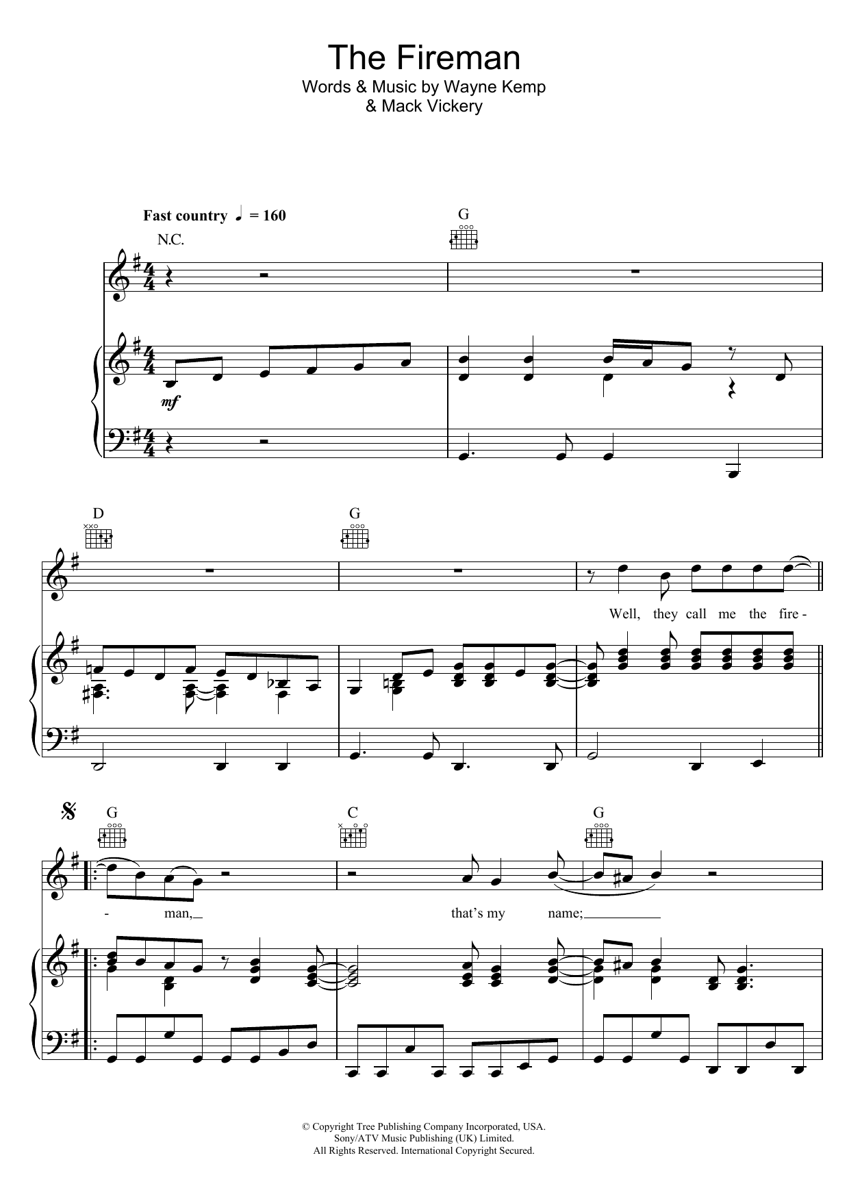 Download or print George Strait The Fireman sheet music, chords and digital score arranged for Piano, Vocal & Guitar Chords. This Country score includes 4 page(s).