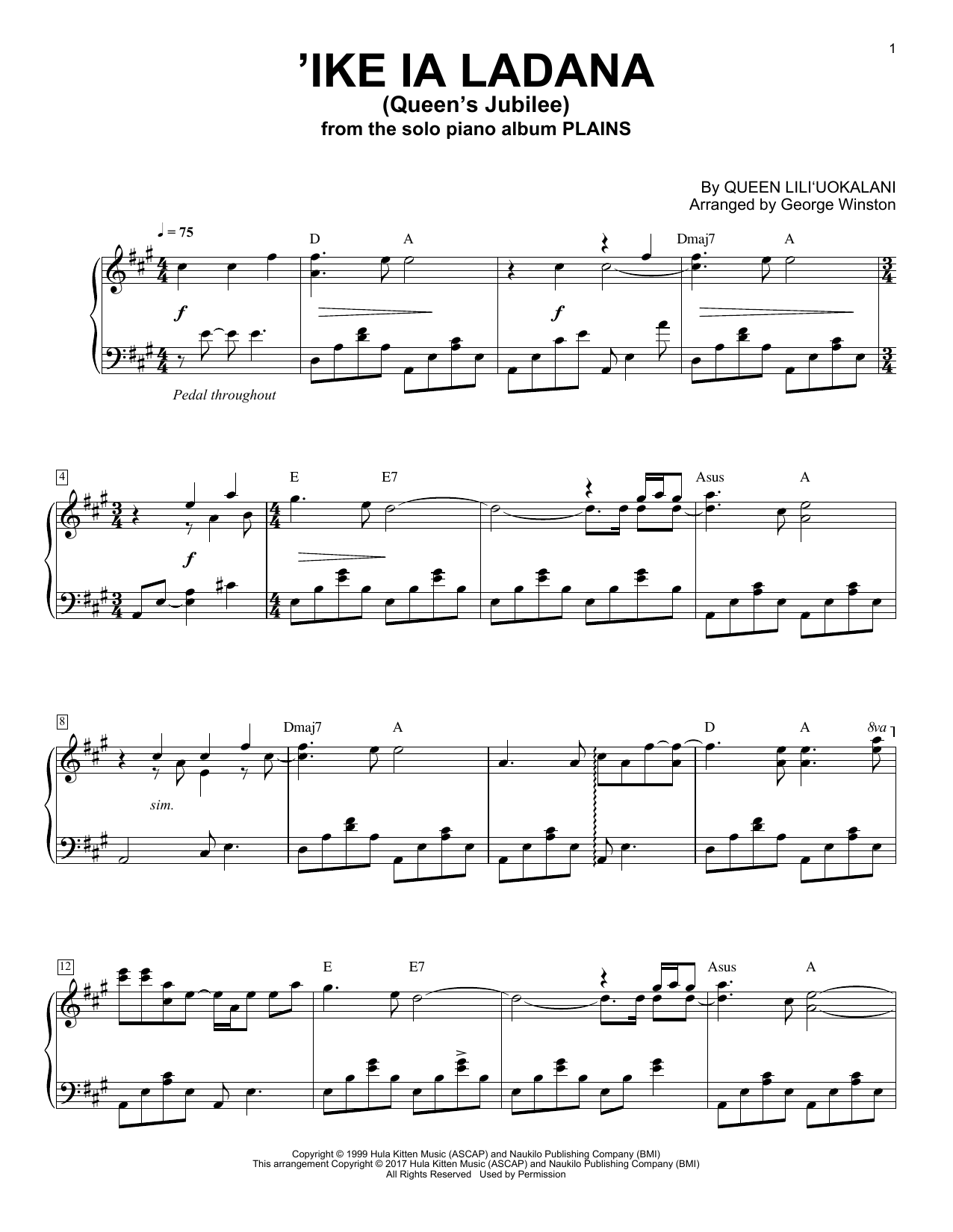 Download or print George Winston Ike La Ladana (Queen's Jubilee) sheet music, chords and digital score arranged for Piano Solo. This New Age score includes 5 page(s).