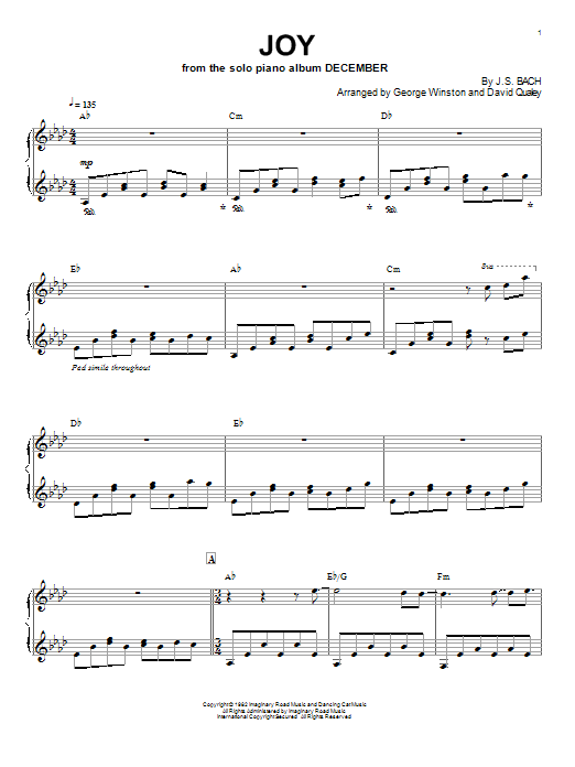 Download or print George Winston Joy sheet music, chords and digital score arranged for Piano Solo. This New Age score includes 7 page(s).