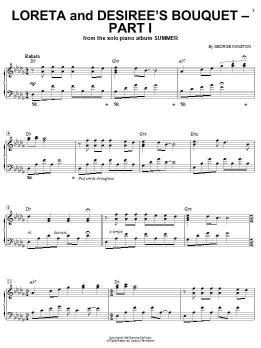 Download or print George Winston Loreta And Desiree's Bouquet-Part 1 sheet music, chords and digital score arranged for Solo Guitar. This New Age score includes 2 page(s).