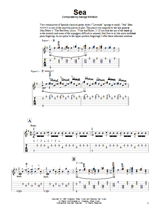 Download or print George Winston Sea sheet music, chords and digital score arranged for Piano Solo. This New Age score includes 3 page(s).