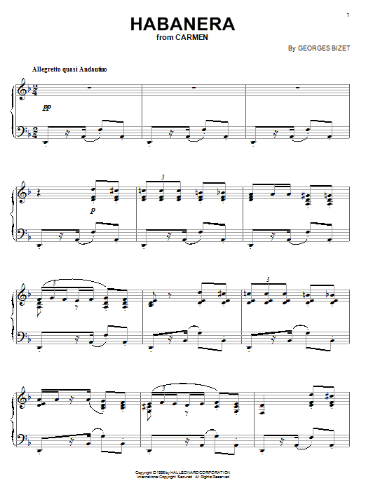 Download or print Georges Bizet Habanera sheet music, chords and digital score arranged for Piano Solo. This Classical score includes 3 page(s).