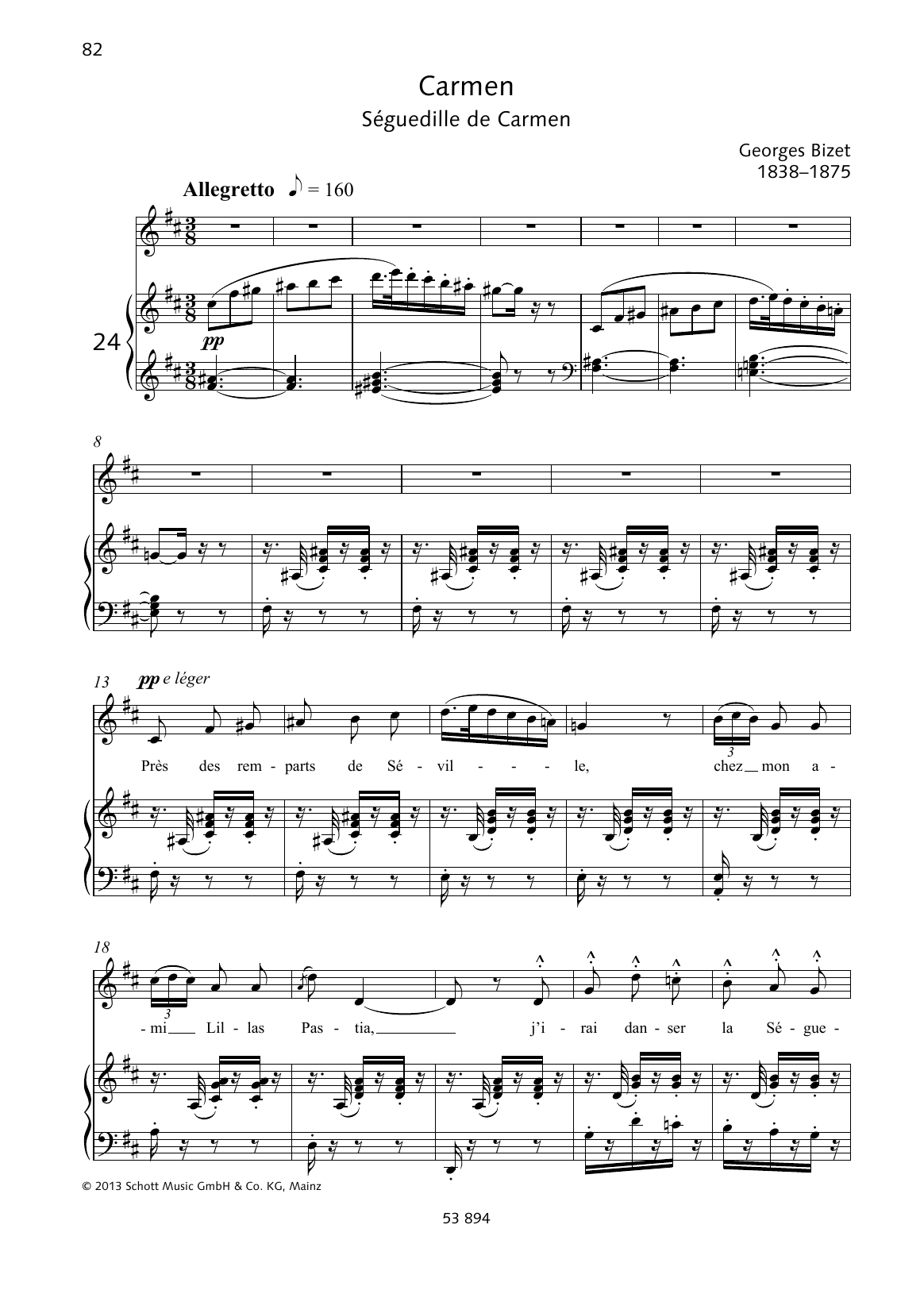 Download or print Georges Bizet Pres des remparts de Seville sheet music, chords and digital score arranged for Piano & Vocal. This Classical score includes 5 page(s).
