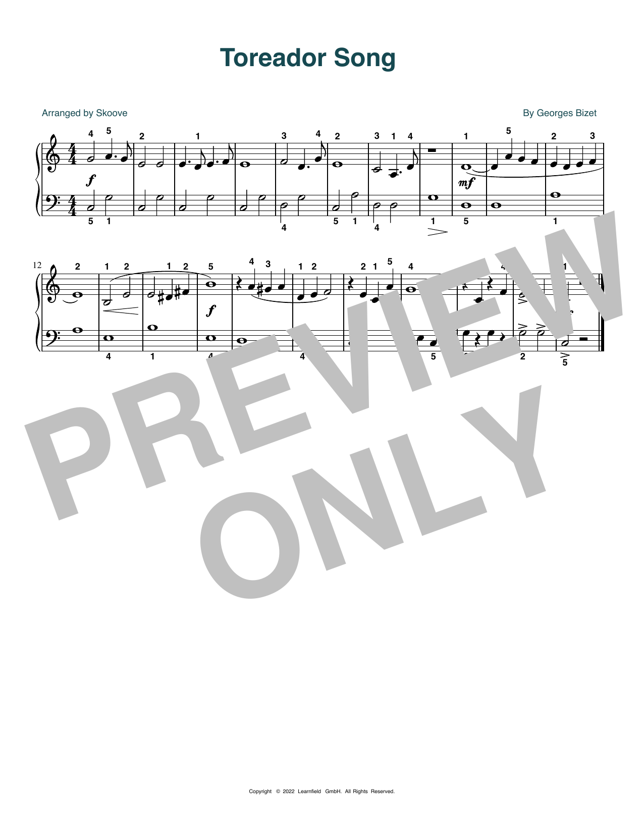 Quick facts Toreador Song (arr. Skoove) about digital sheet music