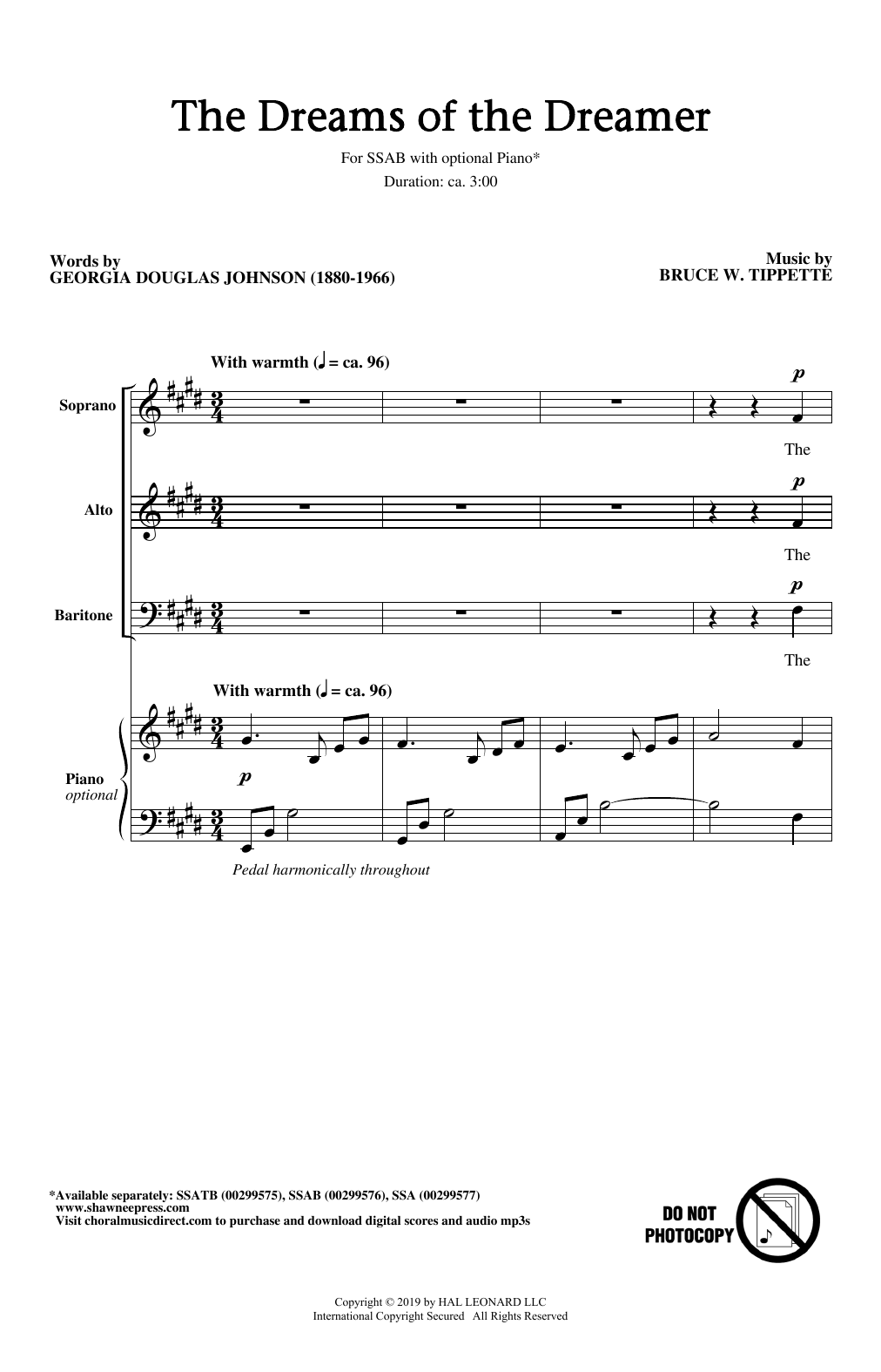 Download or print Georgia Douglas Johnson and Bruce W. Tippette The Dreams Of The Dreamer sheet music, chords and digital score arranged for SSA Choir. This Concert score includes 10 page(s).