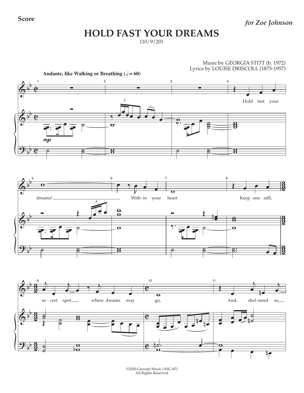 Download or print Georgia Stitt Hold Fast Your Dreams sheet music, chords and digital score arranged for Piano & Vocal. This Contemporary score includes 9 page(s).