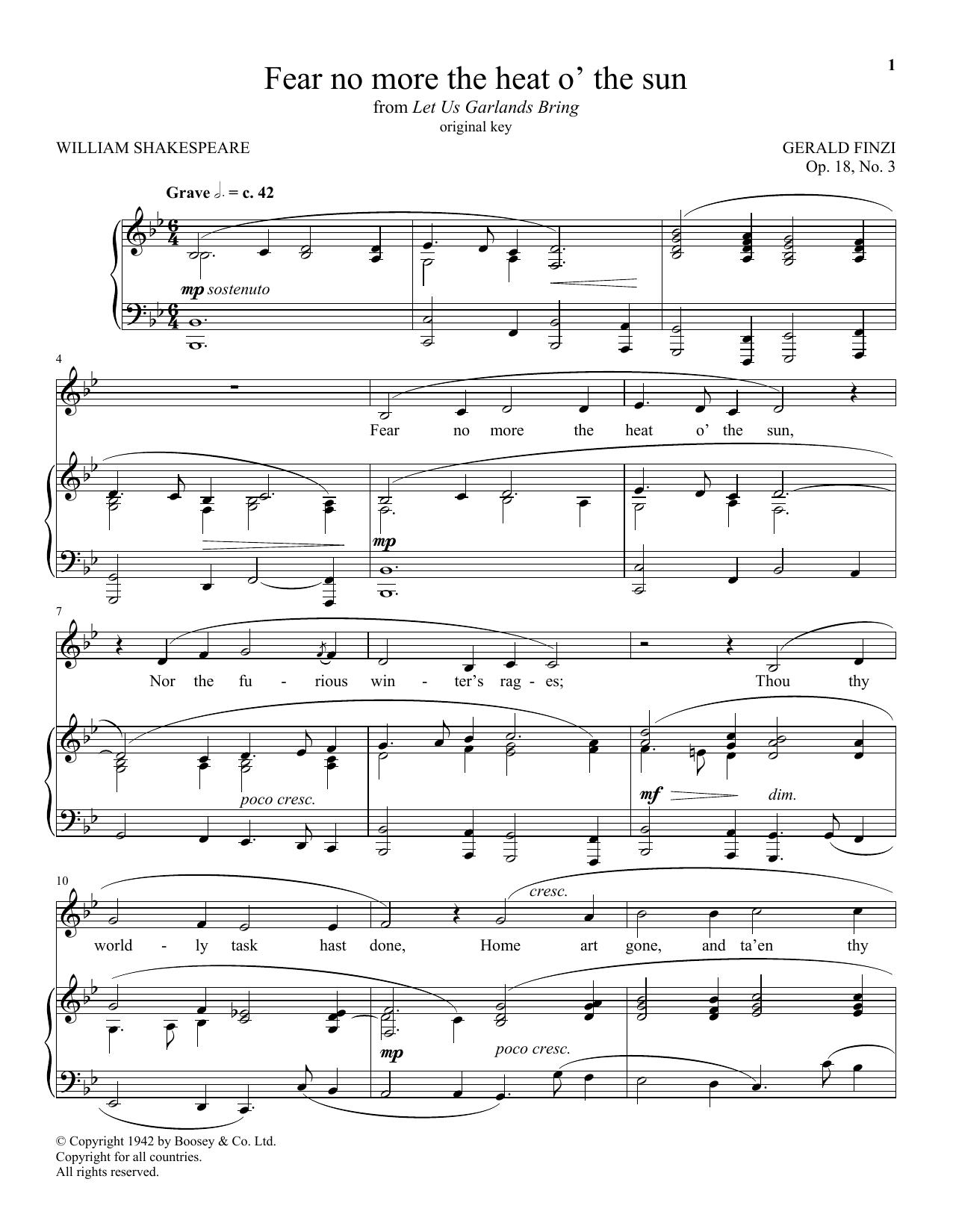 Download or print Gerald Finzi Fear No More The Heat O' The Sun sheet music, chords and digital score arranged for Piano & Vocal. This Classical score includes 5 page(s).