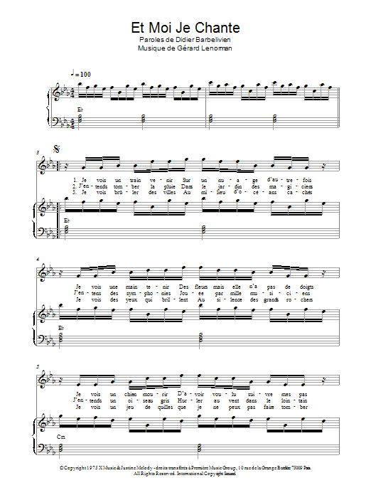 Download or print Gerard Lenorman Et Moi Je Chante sheet music, chords and digital score arranged for Piano & Vocal. This Pop score includes 4 page(s).