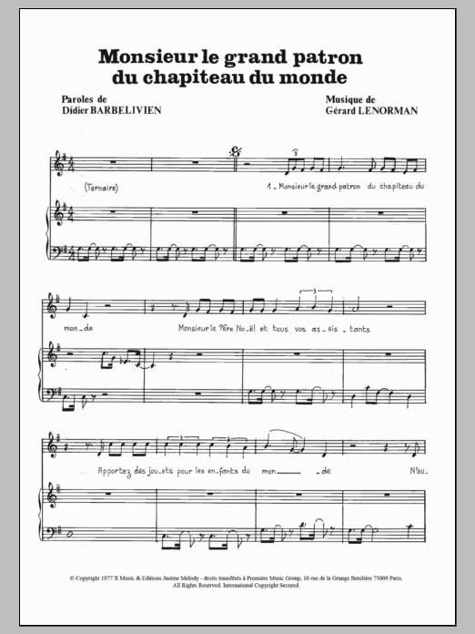 Download or print Gerard Lenorman Monsieur Le Grand Patron Du Chapiteau Du Monde sheet music, chords and digital score arranged for Piano & Vocal. This Pop score includes 3 page(s).