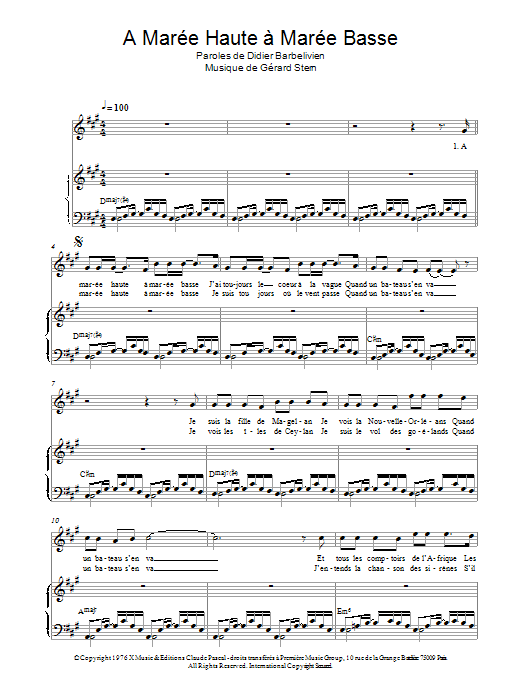 Download or print Gerard Stern A Maree Haute A Maree Basse sheet music, chords and digital score arranged for Piano & Vocal. This Pop score includes 4 page(s).