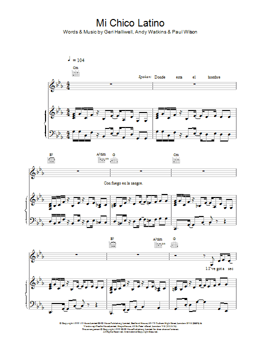 Download or print Geri Halliwell Mi Chico Latino sheet music, chords and digital score arranged for Alto Sax Solo. This Pop score includes 3 page(s).