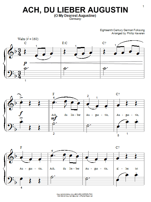 Quick facts Ach Du Lieber Augustin (O My Dearest Augustine) (arr. Phillip Keveren) about digital sheet music