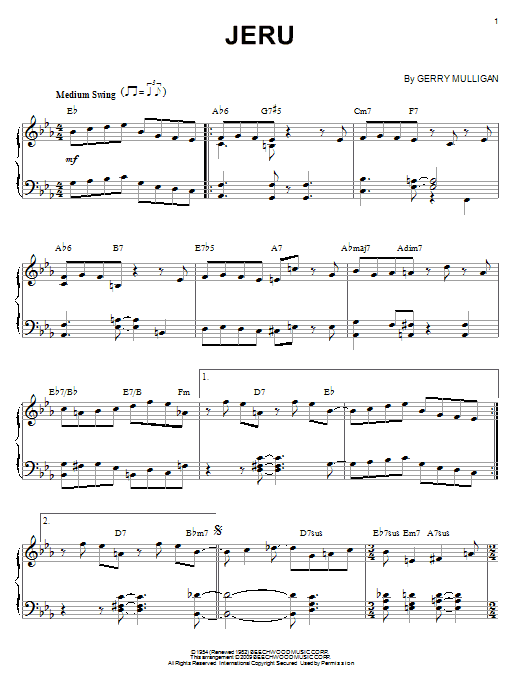 Download or print Gerry Mulligan Jeru sheet music, chords and digital score arranged for Real Book – Melody & Chords. This Jazz score includes 2 page(s).