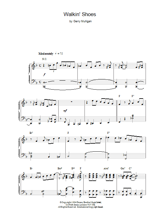 Download or print Gerry Mulligan Walkin' Shoes sheet music, chords and digital score arranged for Baritone Sax Transcription. This Jazz score includes 3 page(s).