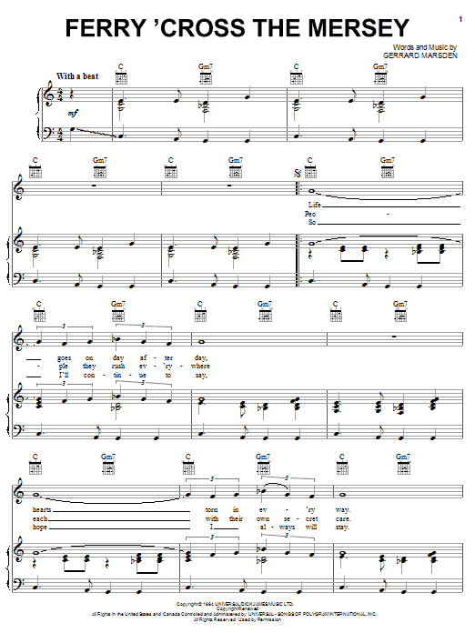 Download or print Gerry & The Pacemakers Ferry 'Cross The Mersey sheet music, chords and digital score arranged for Piano, Vocal & Guitar Chords (Right-Hand Melody). This Oldies score includes 3 page(s).