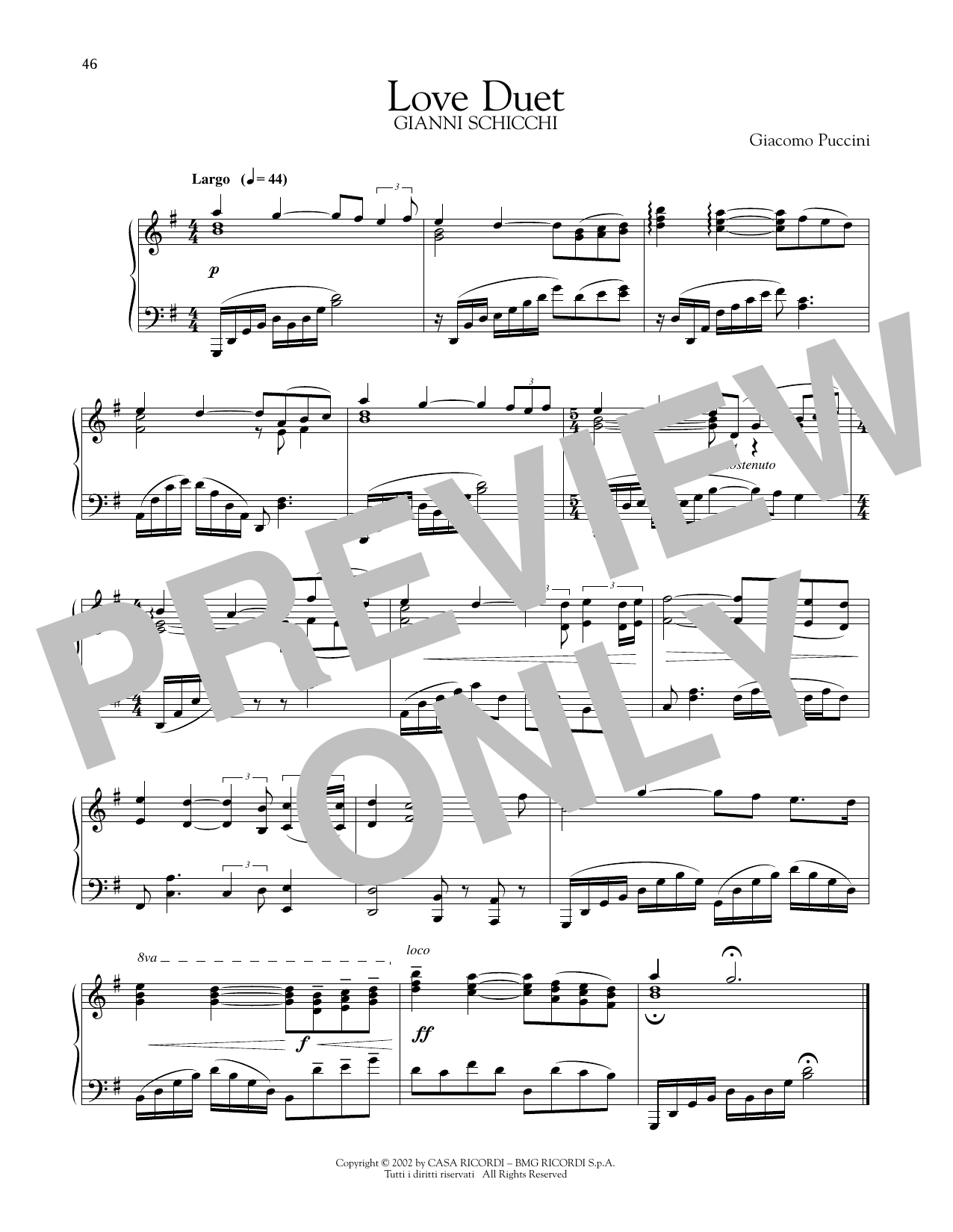 Download or print Giacomo Puccini Love Duet sheet music, chords and digital score arranged for Piano Solo. This Opera score includes 1 page(s).