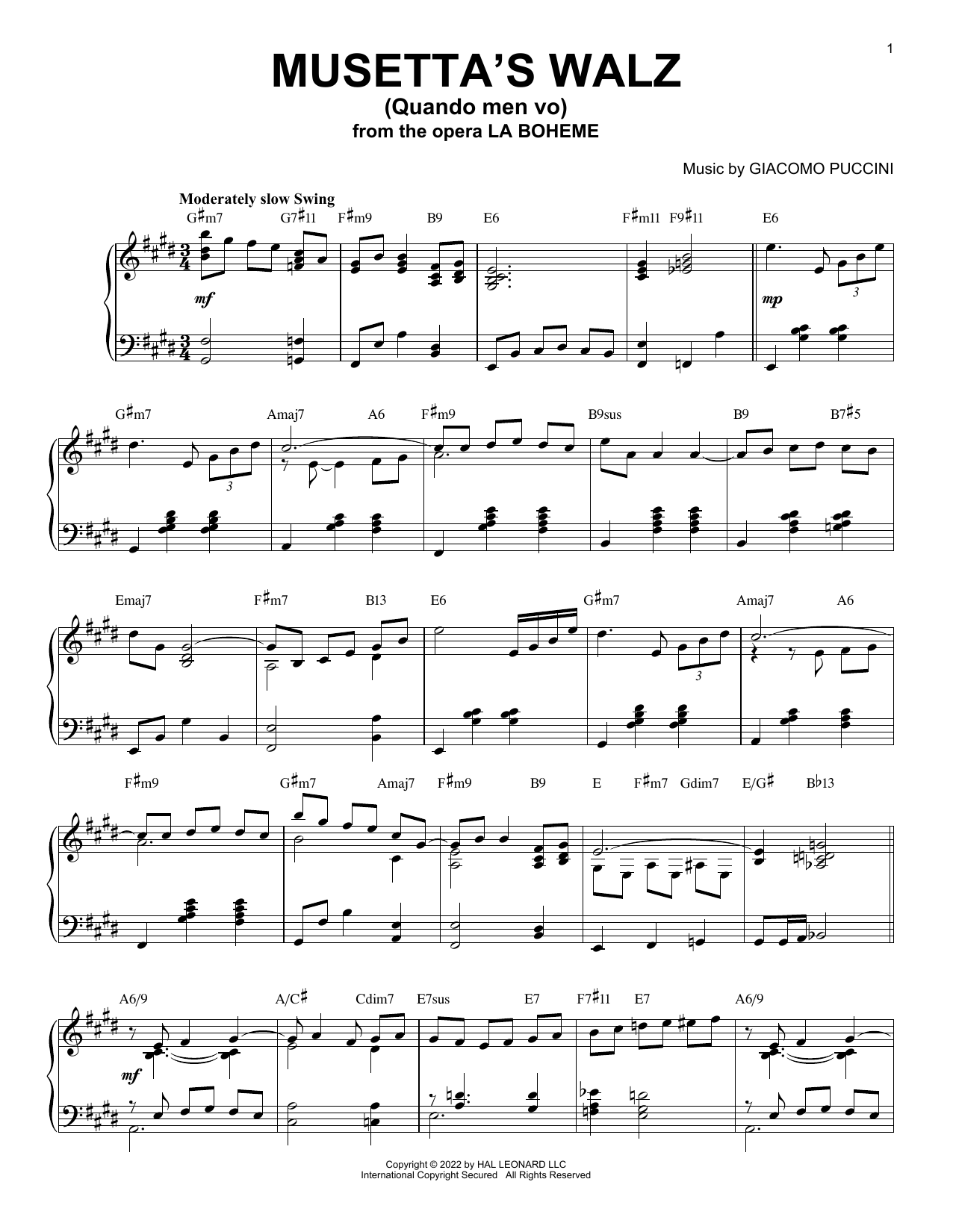 Download or print Giacomo Puccini Musetta's Waltz (Quando Men Vo) [Jazz version] (arr. Brent Edstrom) sheet music, chords and digital score arranged for Piano Solo. This Classical score includes 2 page(s).