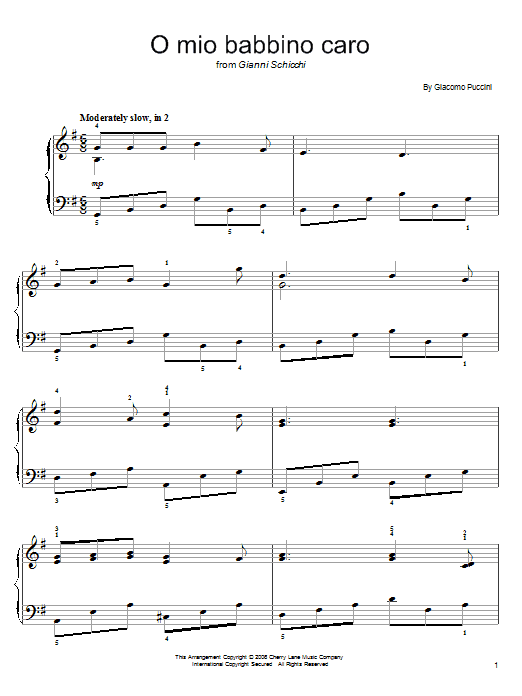 Download or print Giacomo Puccini O Mio Babbino Caro sheet music, chords and digital score arranged for Piano Solo. This Classical score includes 2 page(s).